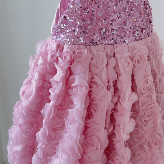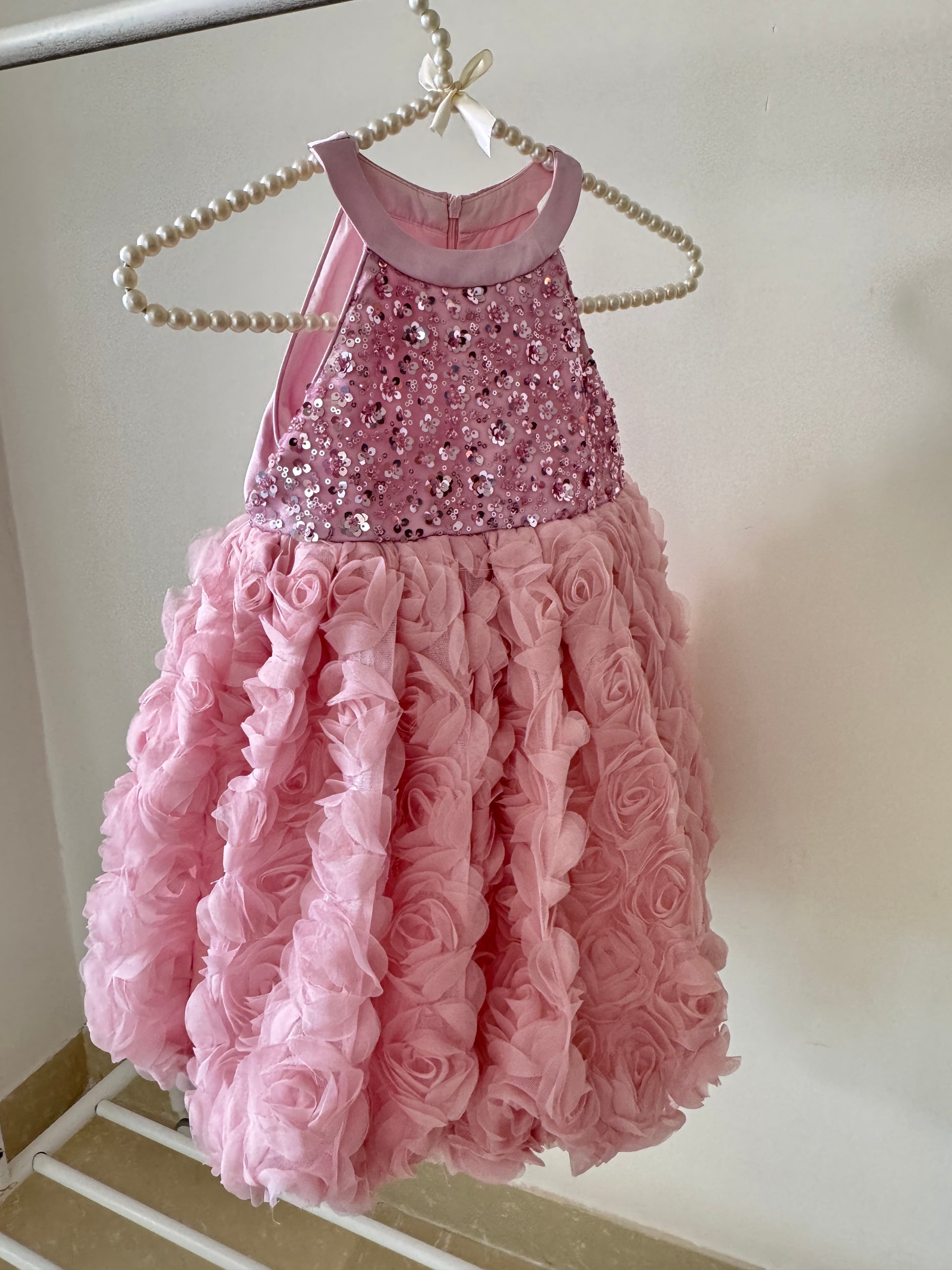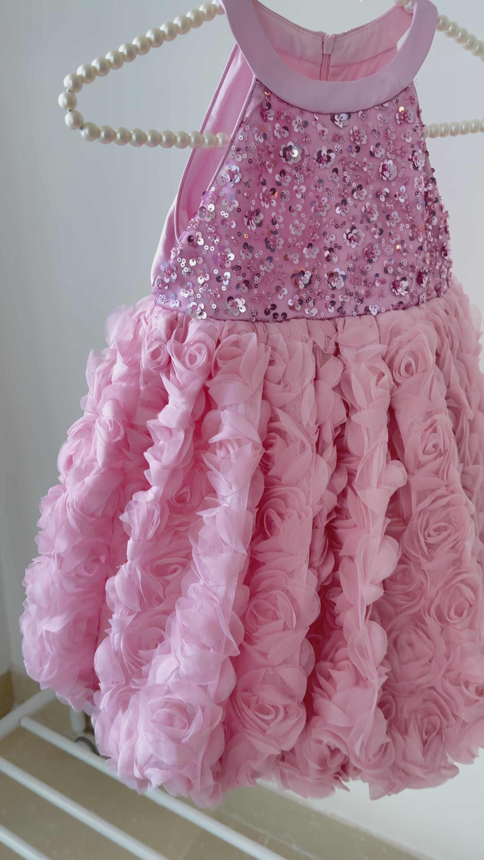 Pink heavy roses flare n sequins work halter neck body perfect for parties & photoshoot