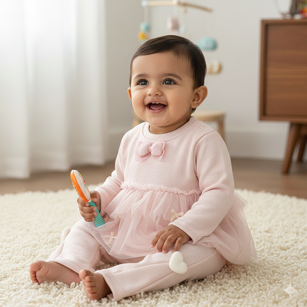 Soft pink 2pc set of sheer detailed warm top & warm flare pant with heart detailing.These Baby co-ords is Multi-Purpose to use as a small functions,birthday outfit and photoshoots It's Perfect and comfortable fit co-ords for your baby girls.