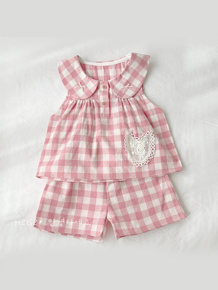 2pc set of top n shorts has a crochet n loop detailing pocket on top