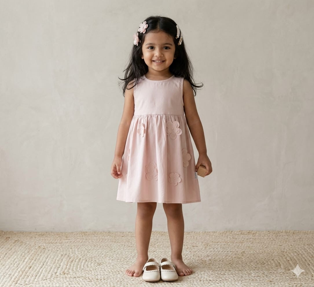 Cute soft cotton dress has flower appliqué detailing on it. BABYBOO clothing is breathable, cool skin-friendly, soft and comfortable for infants.