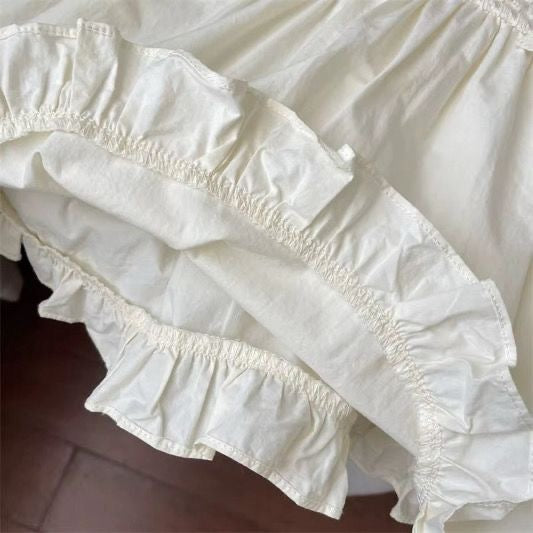 A delicate blend of tradition and charm, this dress is designed to make your little one look effortlessly adorable. The yoke part features sweet flower embroidery, adding a touch of elegance. Instead of sleeves, the dress has fabric ties on both sides, allowing you to create cute bows on each hand for a playful finish.