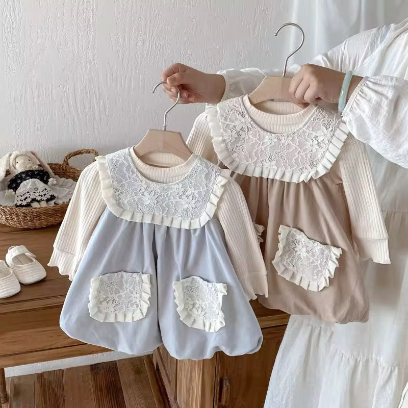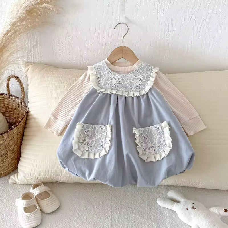 A dress has cape pattern collar & front two pockets detailing . Includes shirt.