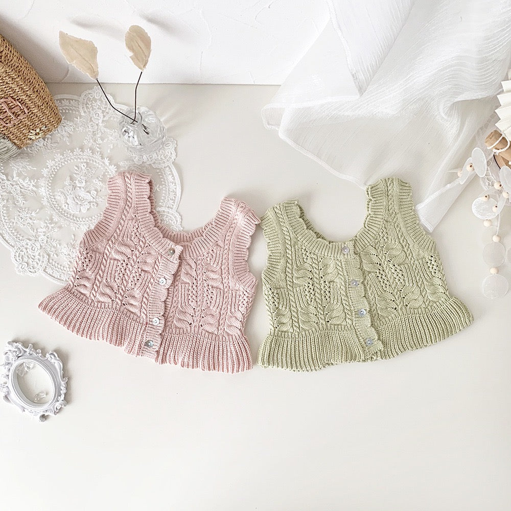 Pink crochet top.
