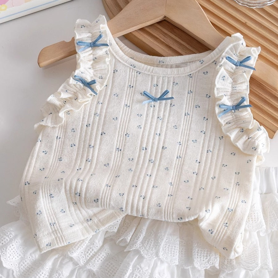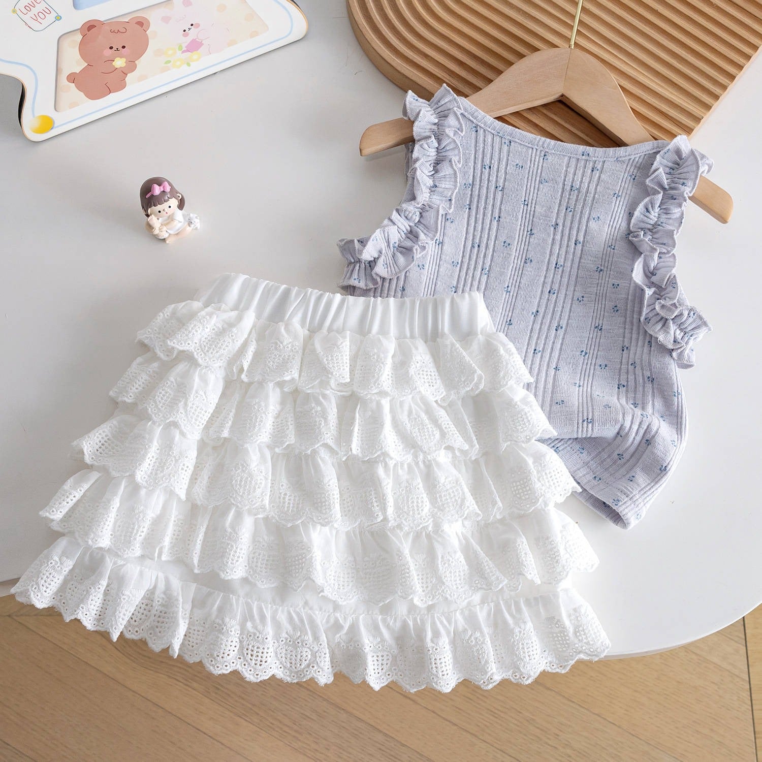 2pc set of top & skirt with hakoba lace ruffle detailing skirt & knitted top