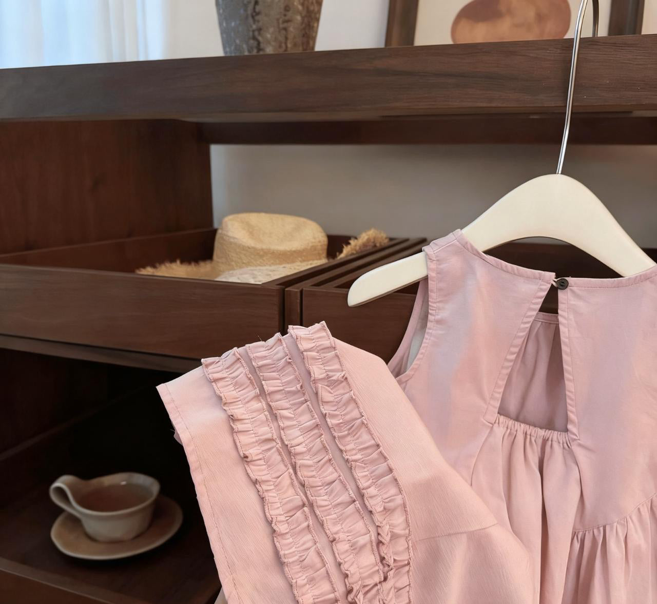 Aline flared Classy dress back neck & front bow with frill detailing neck