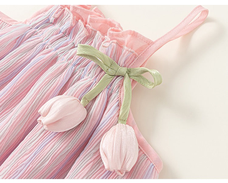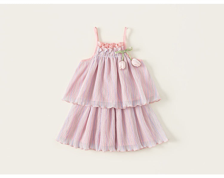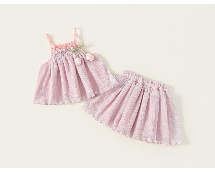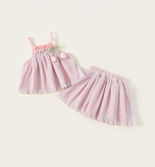 2pc set of Cush texture fabric top & skirt with tulip detail